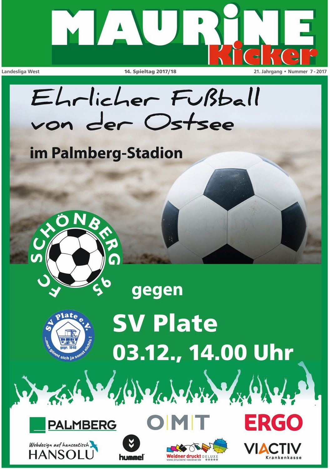 Gehören auch Sie im Vorfeld der Partie zur Startelf des FC Schönberg 95 und präsentieren Sie Ihr Unternehmen auf den Spielplakaten der Maurine-Kicker. Das Spielankündigungsplakat wird zu allen Heimspielen der Ersten Mannschaft an unterschiedlichen Stellen in der Region ausgehängt.