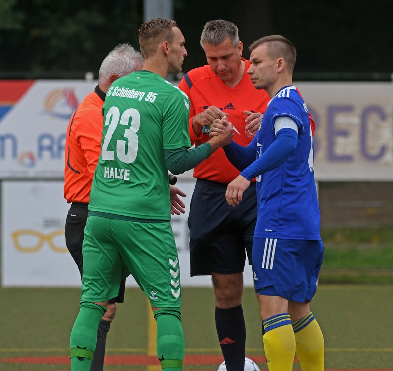 FC Schönberg 95: Przemyslaw Szymura, Simon Leu, Jannes Kanzog, Michel Beckmann (65. Finn Lukas Burmeister), Jelto Focke Reuter, Furkan Kalfa, Tom Schulz (74. Sota Fukaya), Marcel Nagel (74. Jahn-Sylas Schmidt), Jonathan Mildner (74. Marvin Miltzow), Daniel Halke, Eik Schewe (65. Felix Kaben)