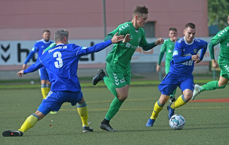 Alle Warnungen, dass die aktuelle Tabellenposition des Penzliner SV nicht dessen tatsächliche Stärke widerspiegeln würde, bewahrheiteten sich gleich in der Anfangsphase. Nach einem Querschläger der Grün-Weißen hatte Normen Richter plötzlich freie Bahn, scheiterte aber an Przemyslaw Szymura. Es hätte das 0:1 sein können und müssen. Kurz darauf verwerte Jelto Focke Reuter zwar eine Flanke von Tom Schulz zum 1:0, aber die Gäste blieben im weiteren Verlauf der ersten Halbzeit weiter auf Augenhöhe. Da beide Teams aus ihren wenigen Möglichkeiten nichts Zählbares machten, ging es für Schönberg mit einem knappen Vorsprung in die Pause.