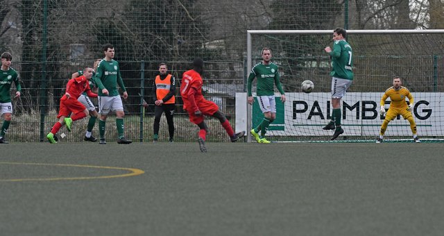 Trotz einseitigem Spiel wollte dem Tabellenführer vor der Pause kein Treffer gelingen. Viele Ecken und Flanken, viele Schüsse aus der zweiten Reihe – nichts davon konnte die mit großem Einsatz spielende Anker-Abwehr überwinden.