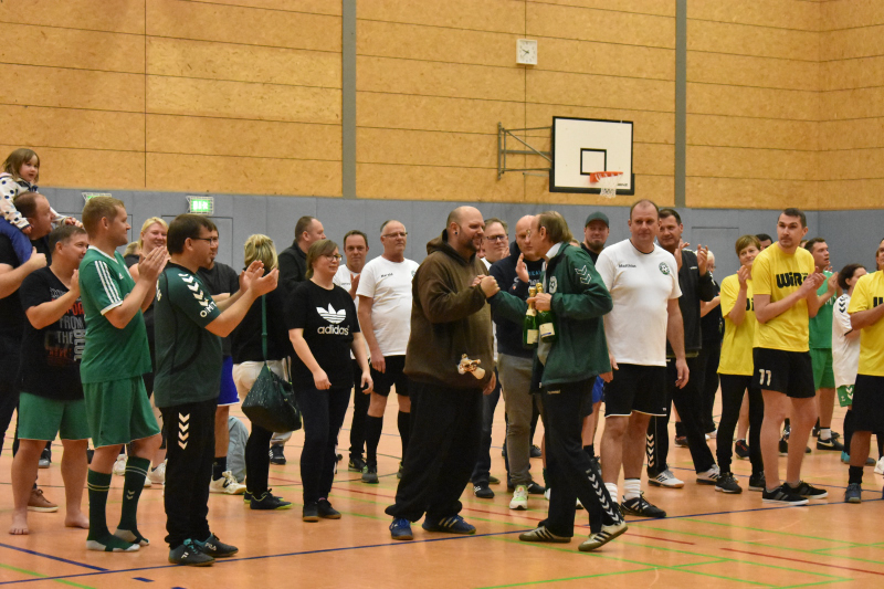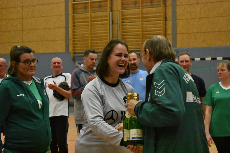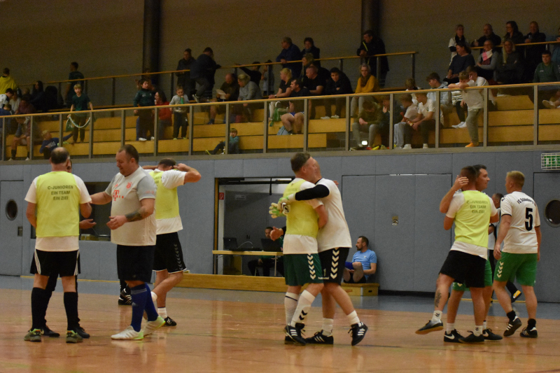 Nach zwei Jahren Corona-Pause fand vergangenen Freitag die 4. Elternmeisterschaft statt. Dieser Abend stellte den Auftakt in die kommende Hallensaison dar und hatte es von Beginn an in sich. Voller Vorfreude und Aufregung starteten die Eltern ins Turnier. Lautstark unterstützt vom Nachwuchs, Freunden und Verwandten, wobei Trommeln, Tröten und Klatschhände zum Einsatz kamen. Insgesamt kämpften sieben Mannschaften um den begehrten Wanderpokal. Alle Jugendmannschaften waren somit vertreten. Das glänzende Silber angelten sich am Ende die Eltern unserer C-Jugend, die im Turnierverlauf nur ein einziges mal das Nachsehen hatten.