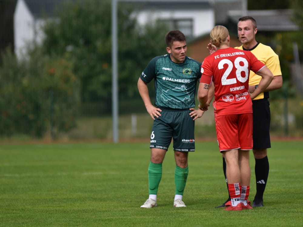 FC Mecklenburg Schwerin: Ethan Patrick Kennedy, Jan Lachnitt, Lucas Holz (69. Joel Bilson), Henning Leu, Andrii Shalabai (46. Temilola Samuel Awoyale), Nico Zapel, John Arvid Lenkeit, Bashir Schultz (69. Kyoyoung Chu), Nelson Mandela Mbouhom (59. Max Zellmann), Till Rohloff, Alexander Pataman (90. Leon Nevermann)