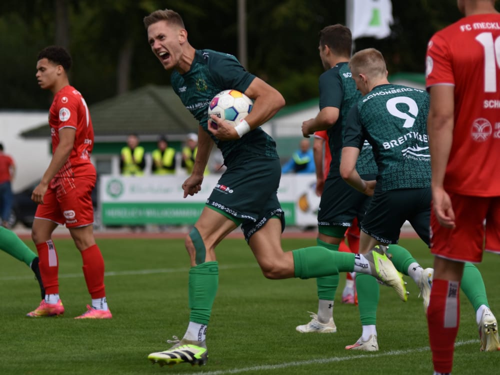 Bei spätsommerlichen Bedingungen empfingen die Maurine-Kicker aus Schönberg den FC Mecklenburg Schwerin im Palmberg-Stadion. Die rund 200 Zuschauer sahen ein temporeiches, intensives Verbandsligaduell, das die Gäste aus der Landeshauptstadt am Ende mit 3:1 für sich entschieden. Bereits nach fünf gespielten Minuten war dabei der Matchplan von FC95-Trainer Somodi schon ein erstes Mal über den Haufen geworfen. Ein Schuss von Mecklenburgs Kapitän Nico Zapel war laut dem Schiedsrichter-Team bei seinem Schuss mit vollem Umfang über der Linie, eine zumindest fragwürdige Entscheidung. Schönberg brauchte einige Minuten, um ins Spiel zu finden, stemmte sich dann aber mit viel Kampfgeist gegen den Rückstand. Trotz einiger guter Ansätze vor dem gegnerischen Tor fehlte es jedoch an der letzten Konsequenz im Abschluss, sodass es mit dem knappen 0:1 in die Kabinen ging. Nach dem Seitenwechsel nahm das Spiel noch einmal deutlich an Fahrt auf, aber erste Annäherungsversuche von Marco Bode und Salyvan Schmidt fanden ihr Ziel zum Ausgleich noch nicht. In der 55. Minute erhöhte Temilola Samuel Awoyale für Mecklenburg Schwerin auf 0:2. Doch die Maurine-Kicker antworteten prompt: Nur vier Minuten später brachte Tom Jurga die Hausherren mit seinem Anschlusstreffer wieder zurück ins Spiel. Die Partie war nun völlig offen, da die Gäste aus Mecklenburg kurz vor dem Anschlusstreffer durch ein wiederholtes Foulspiel Verteidiger Jan Lachnitt verloren. Die Gastgeber versuchten jetzt alles, um das Spiel auf ihre Seite zu ziehen, aber Chancen von Tom Jurga, Salyvan Schmidt und Jannes Kanzog fanden ihren Meister entweder in Gästekeeper Ethan Patrick Kennedy oder verfehlten ihr Ziel nur knapp. Mecklenburg Schwerin verteidigte leidenschaftlich und setzte weiter gefährliche Nadelstiche. In der 79. Minute sorgte schließlich Kyouyoung Chu mit dem Treffer zum 1:3 für die Vorentscheidung. Der Angreifer vollendete einen schnellen Angriff eiskalt und stellte damit den alten Zwei-Tore-Abstand wieder her. Zu allem Überfluss verloren die Westmecklenburger dann auch noch Salyvan Schmidt, der innerhalb weniger Sekunden die Gelbe und die Gelb-Rote Karte von Schiedsrichter Philipp Tautenhahn erhielt. Nach 90 umkämpften Minuten blieb es beim 1:3 aus Sicht der Maurine-Kicker. Während Mecklenburg Schwerin den nicht komplett unverdienten Auswärtssieg feierte, haderte Schönberg mit der verpassten Chance, nach der Schweriner Unterzahl die Partie noch einmal komplett zu drehen und sich zumindest mit einem Punkt zu belohnen.