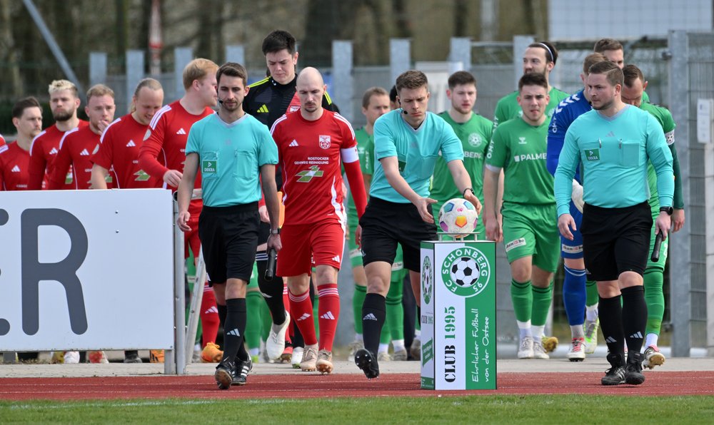 FC Schönberg 95: Kilian Dankert, Max Kley, Erik Schameitke, Jannes Kanzog, Michel Beckmann, Tim Queckenstedt (90. Salyvan Schmidt), Felix Kaben, Tom Jurga (77. Denis Godknecht), Daniel Halke, Jan Muhlack, Younes Laribi (66. Fiete Richard Hafemeister)