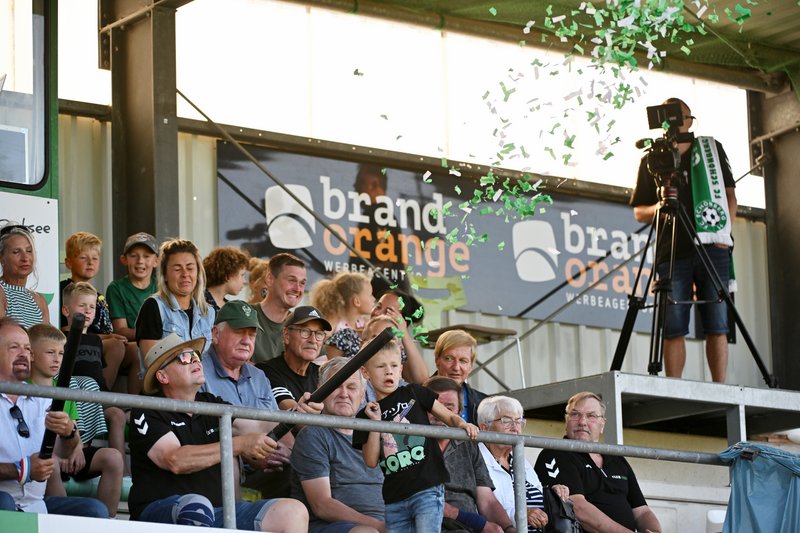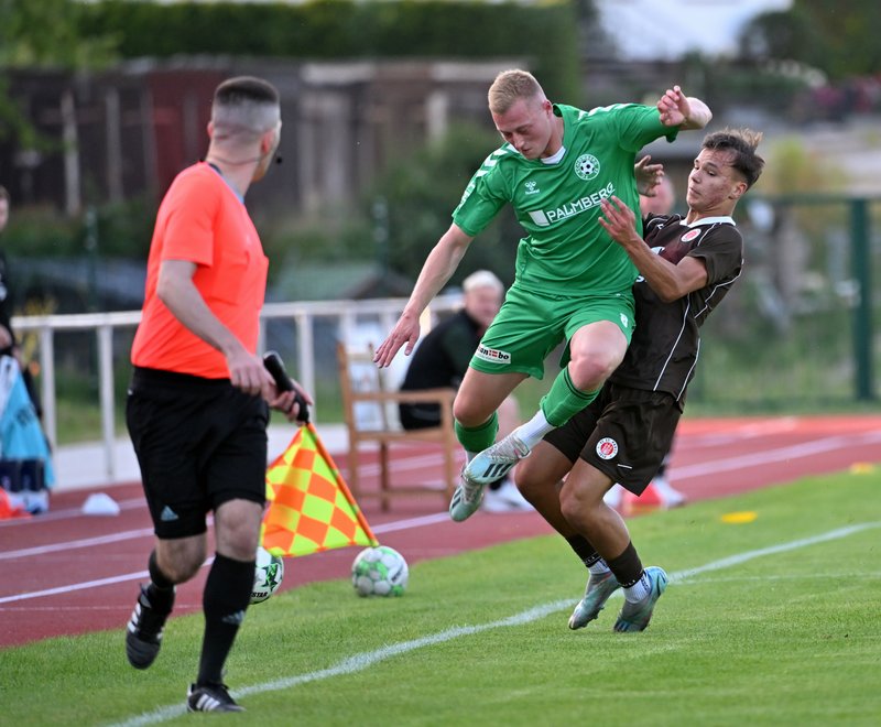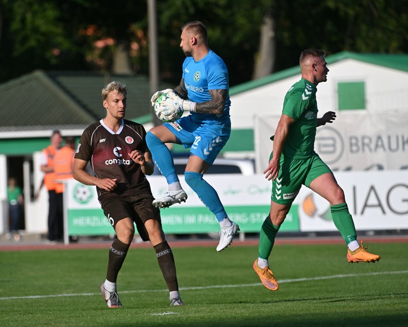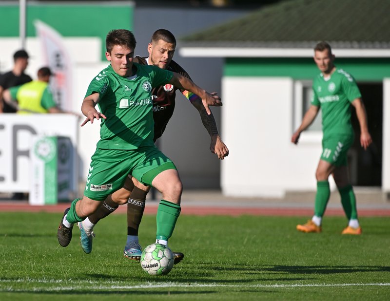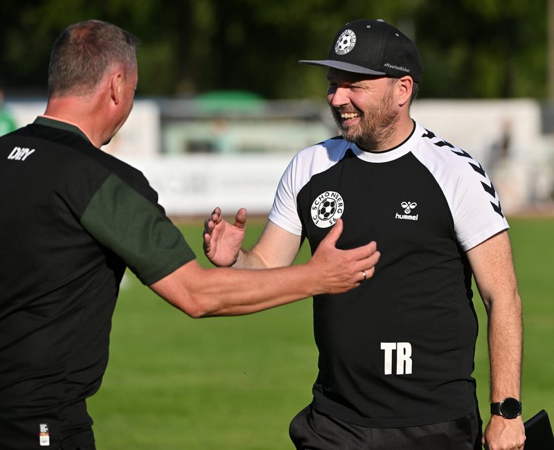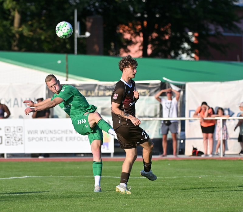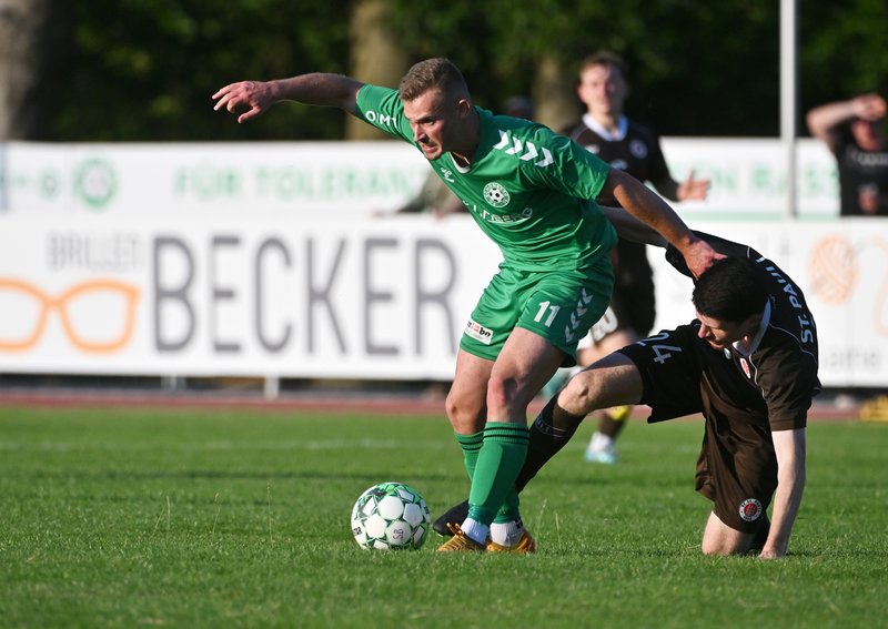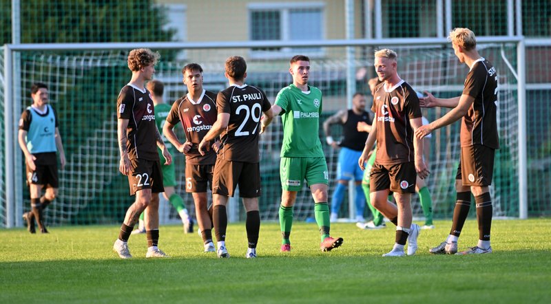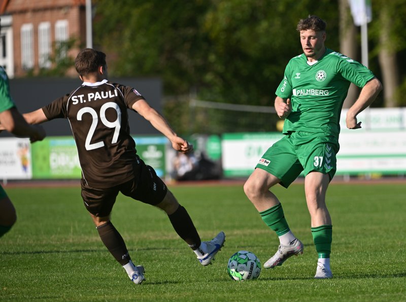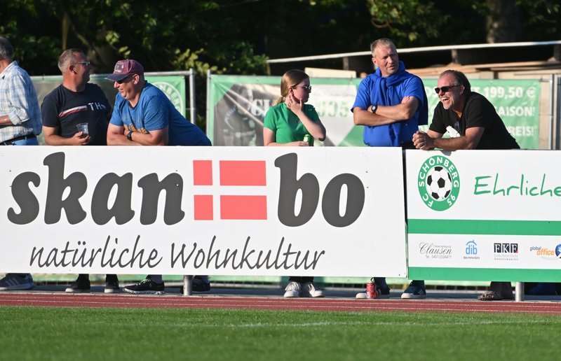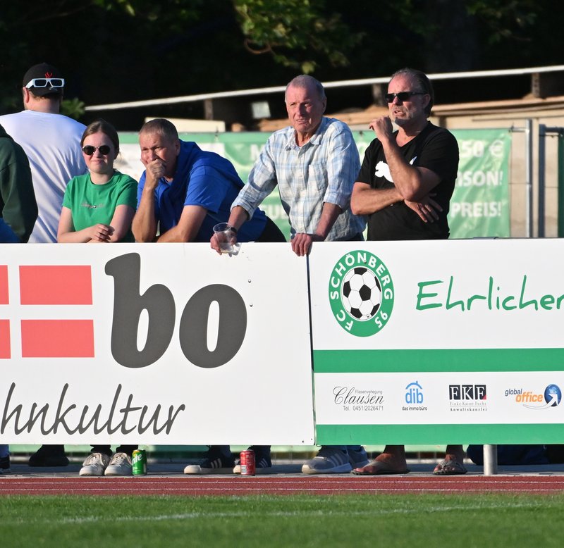 Nach über einem Jahr konnte die Verbandsligamannschaft des FC Schönberg 95 endlich wieder mal ein Spiel im Palmberg-Stadion bestreiten, denn die Umbauarbeiten sind so gut wie abgeschlossen. Und trotz der 0:3-Niederlage gegen die U23 des FC St. Pauli (Regionalliga) gab es nach dem Abpfiff fast ausschließlich zufriedene Gesichter. Perfektes Wetter, das in ein Schmuckkästchen verwandelte Palmberg-Stadion und eine Klasse-Leistung der Maurine-Kicker, die die Partie sehr lange offen halten konnten, gaben auch keinerlei Anlass für schlechte Stimmung auf den gut besuchten Rängen. Die erwartungsgemäß spielbestimmenden Gäste gingen erst in der zweiten Halbzeit durch einen Elfmeter in Führung und der Ehrentreffer für die Grün-Weißen lag durchaus im Bereich des Möglichen. Das erste Vorbereitungsspiel des FC Schönberg 95 war zugleich das Abschiedsspiel für seinen überaus erfolgreichen Torjäger Jelto Focke Reuter, der den Verein bereits im Winter wegen seines Studiums verlassen hatte und es war schön, ihn noch einmal in Aktion zu sehen. Nach der Partie trafen sich Mannschaft, Club 1995 und Freunde des Vereins in der Brillen-Becker-Lounge, um den Abend gemeinsam ausklingen zu lassen.